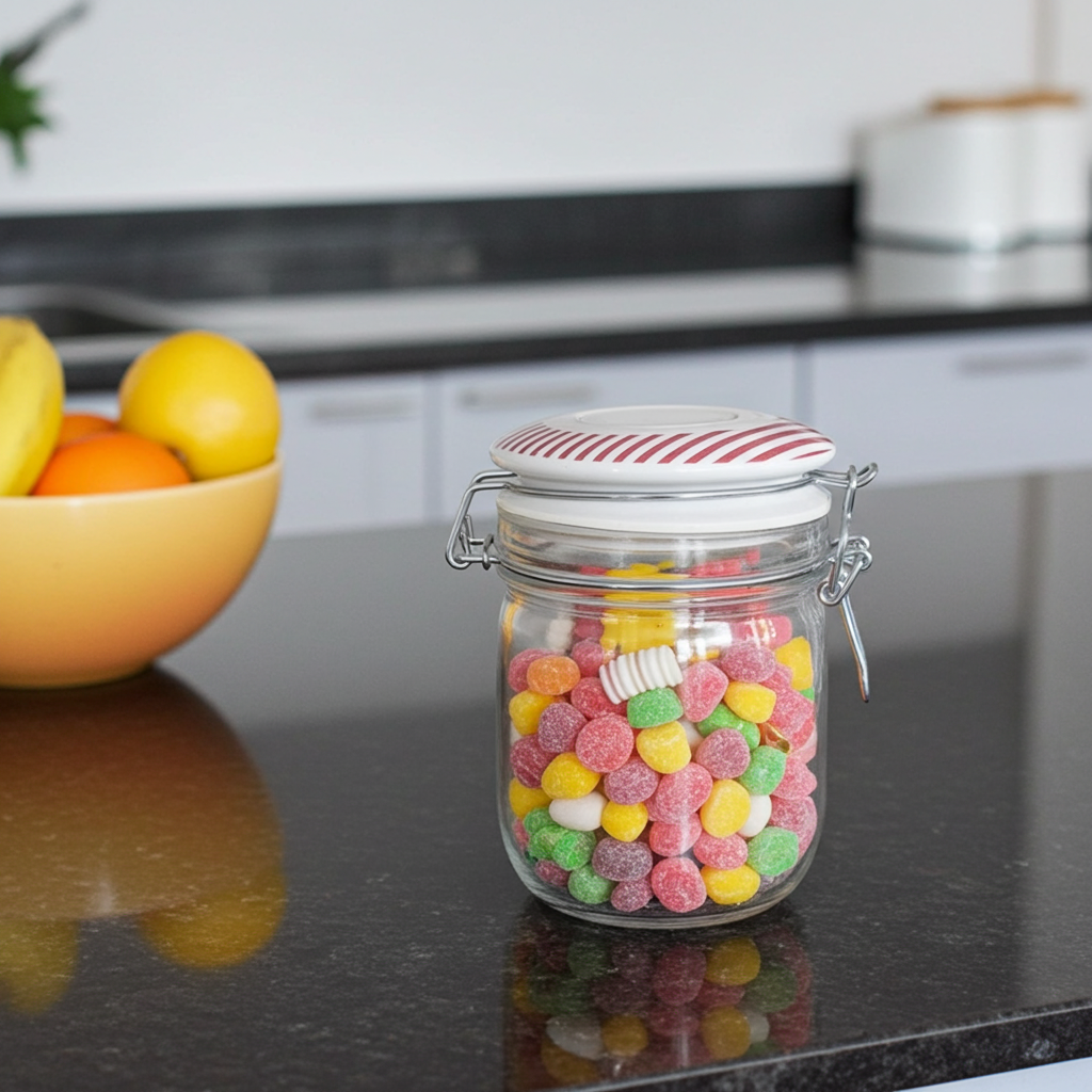 Il vetro trasparente di qualità permette di vedere immediatamente il contenuto, mentre la chiusura ermetica garantisce freschezza e protezione dagli agenti esterni. Il tappo decorato aggiunge un tocco di eleganza che trasforma un semplice contenitore in un elemento decorativo per la tua cucina.